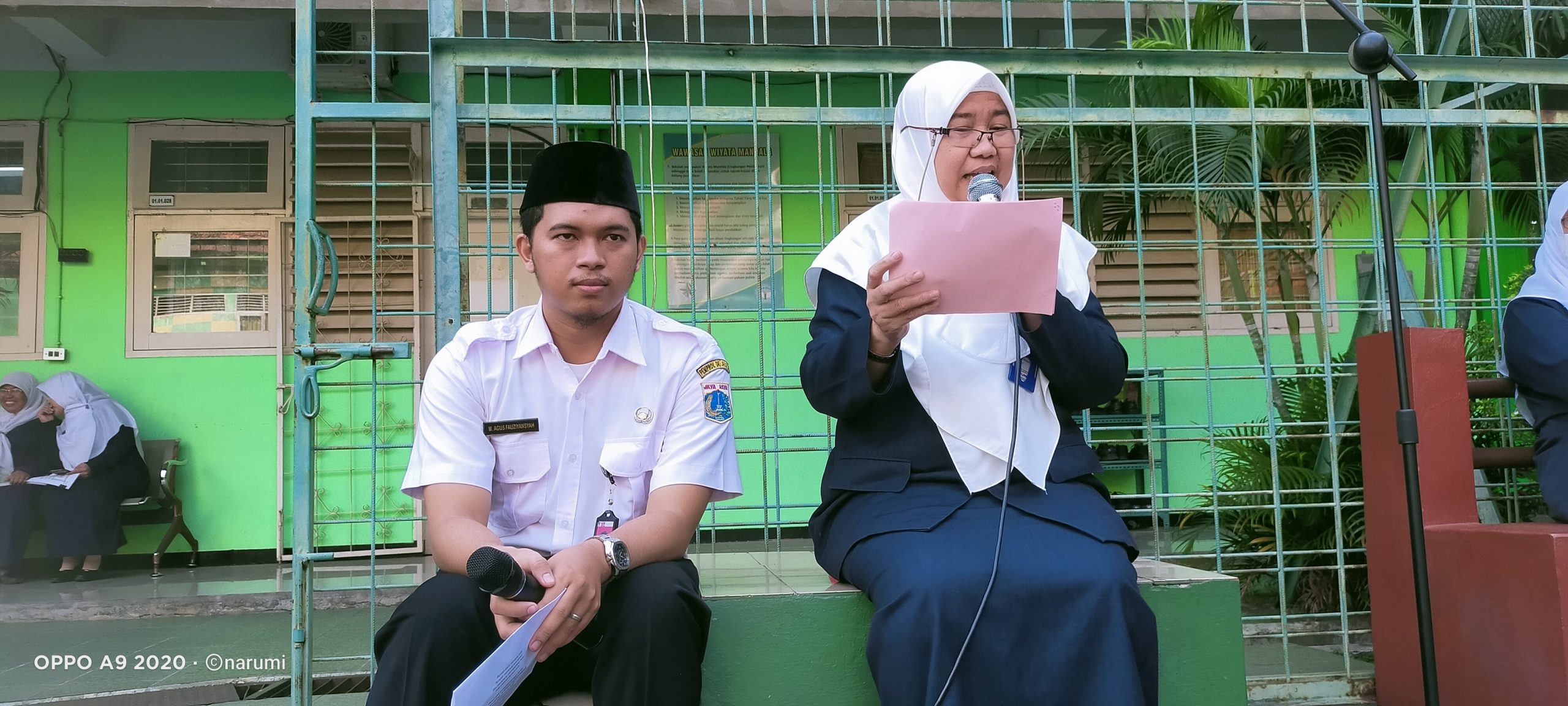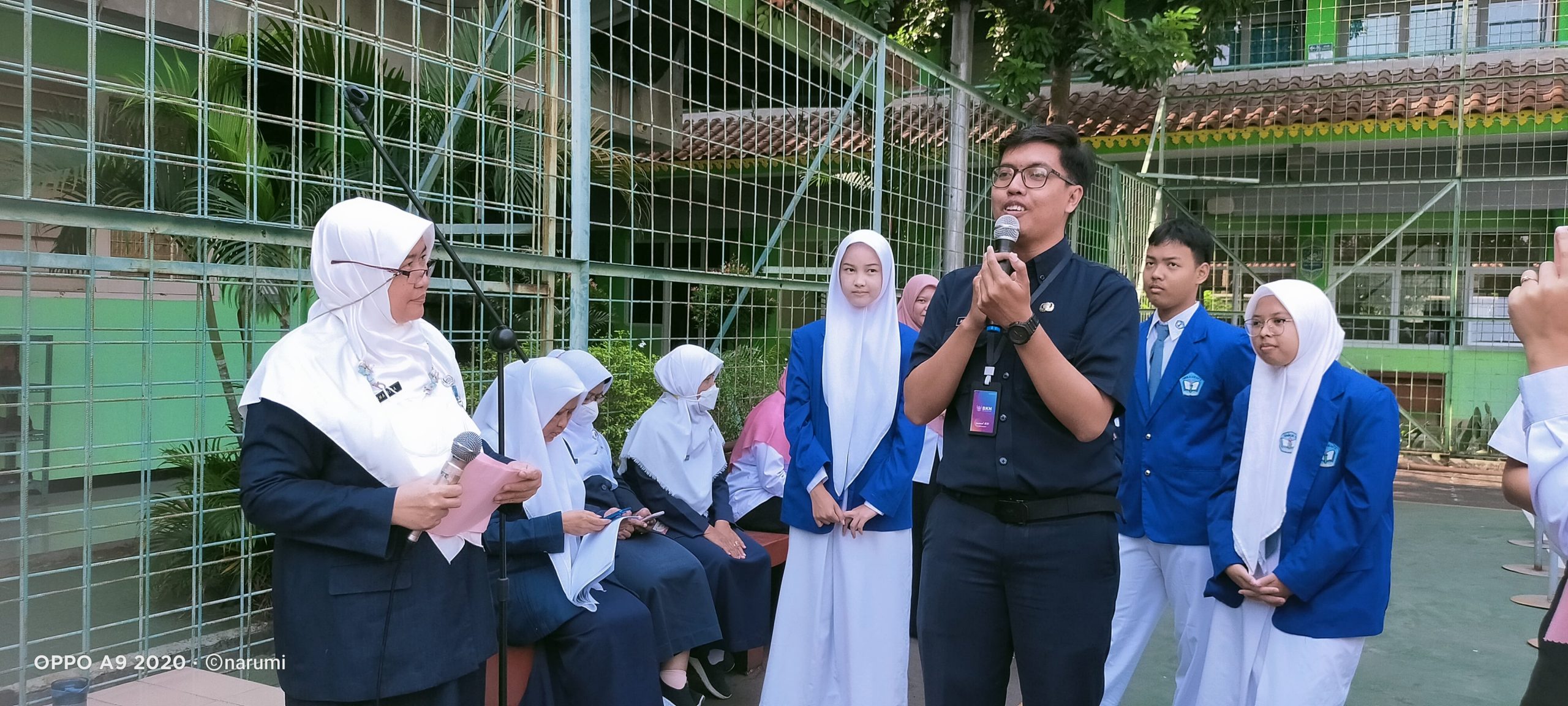 Kesempatan ini pun diberikan informasi promosi Perpustakaan oleh Alfian, S.Pd selaku kepala perpustakaan sekolah yang meruapakan wadah dan sumber utama gerakan literasi di sekolah. Dan motivasi berliterasi yang disampaikan oleh Khairita, S.Pd selaku guru matematika. Motivasi literasi dicontohkan dengan beberapa bacaan Puisi, cuplikakan bacaan dan penggalan sajak dan lagu. Siswa antusis menyimak penggalan bacaan dan sajak yang disampaikan oleh Khairita, S.Pd. Sebelum ditutup dikenalkan pula latar belakang Bulan Bahasa yang disampaikan oleh Nuryani, S.Pd selaku ketua pokja Literasi Sekolah.